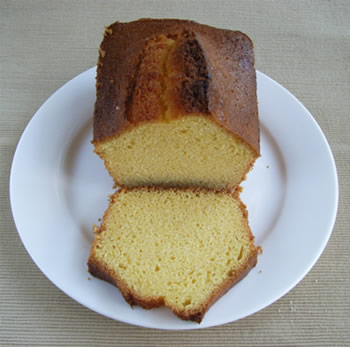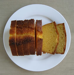コーンミールの歯ざわりが香ばしい!甘さ控えめの、朝食にもぴったりのパウンドケーキです。(野菜ジュースと一緒に食べてね)